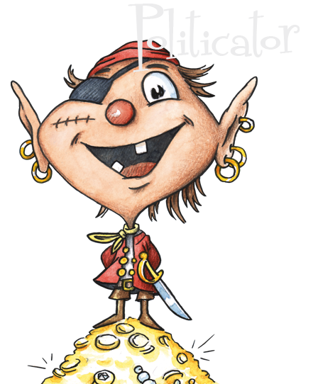 Politicator the Pirate remembers well. He was proud on his ship sailing through the winds. He knew how to read the wind flows and the waves would carry him wherever he wanted. When the mermaids would see his sail on the horizon, they knew they had to swim fast. Until the day when, unfortunately for him, his destiny crossed path with with two blue dolphins.
