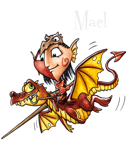 It was only unitl a few years later that little Mael was seen again. Riding a Dragon, he had become Carabouille’s knight. When Mael gets tired after slaying 5 headed snakes, he thinks to himself, that on that night, he should have stayed in bed…..